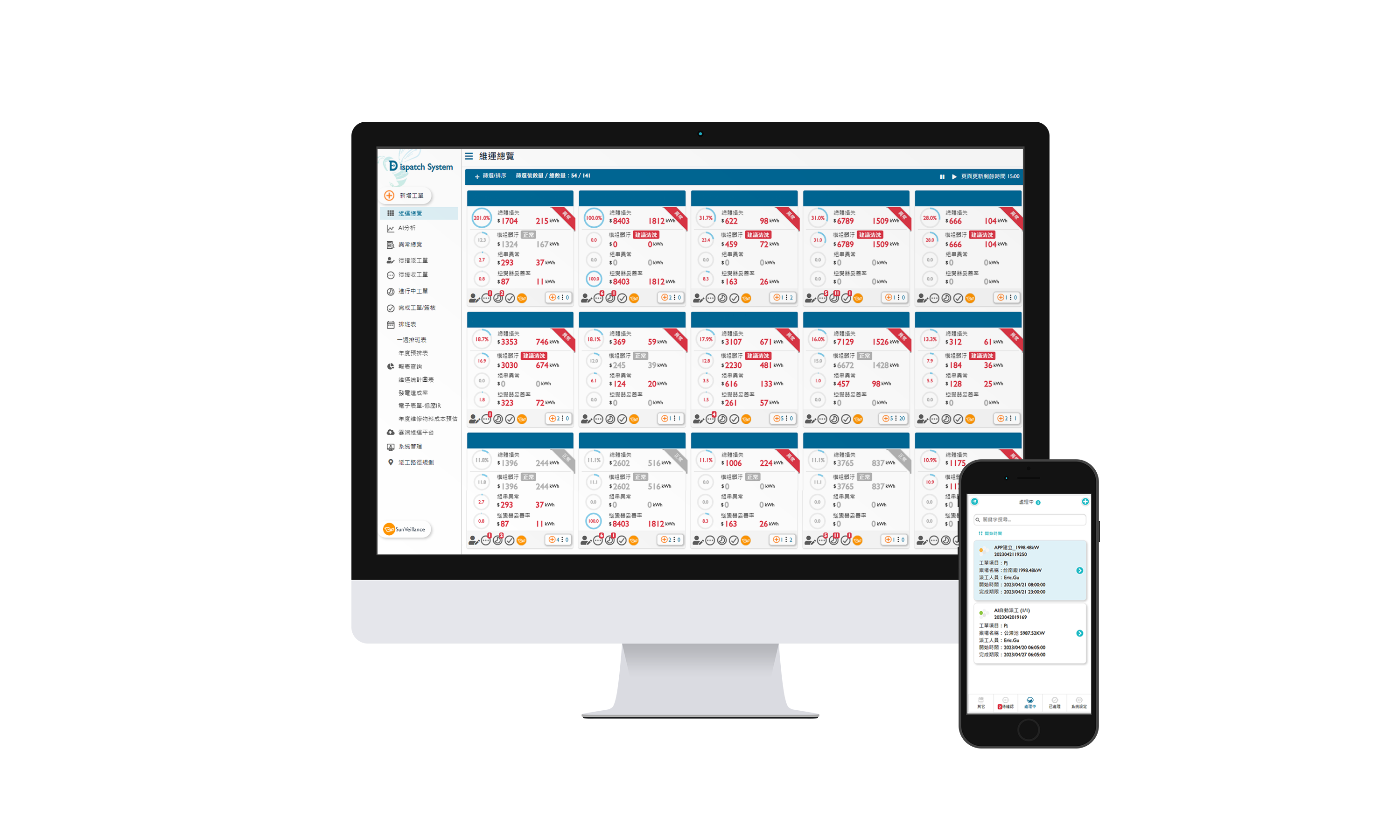4001百老汇太陽能智能運維管理系統包括雲端監控工具、AI分析與智慧自動派工及運維APP,實現電廠自主管理。